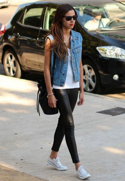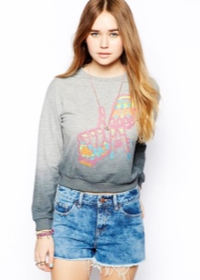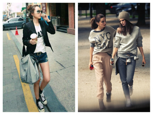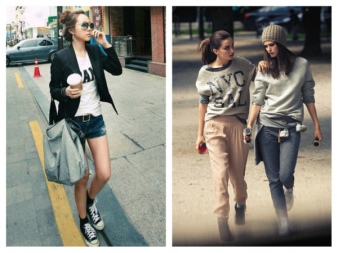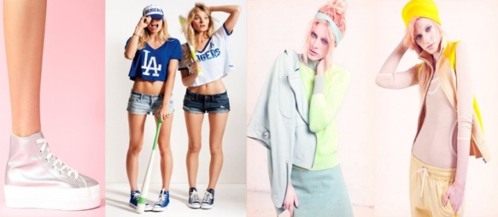 Choosing clothes of any kind of this style, a girl can make bright and stylish bows for any season. The summer look is perfectly complemented by shorts and skirts, tops and T-shirts, dresses and pants of a sports cut of a wide variety of colors. Winter or spring onions in this style do not appear without a short down jacket or parks, as well as insulated leggings and jeans or pants on a fleece.