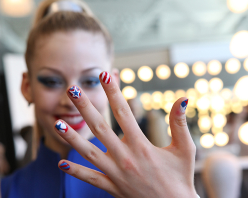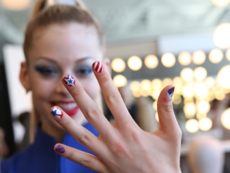 Nails should not be long and neat. Manicure should be selected in accordance with the color scheme of the bow, you can also choose a universal option. Here you can show imagination and choose a bright and original drawing.