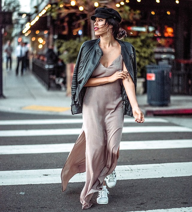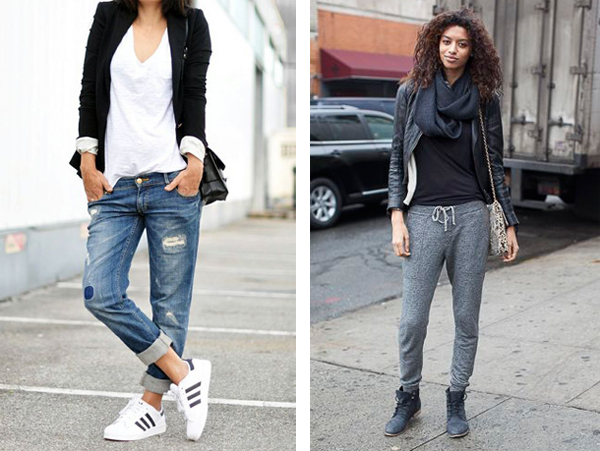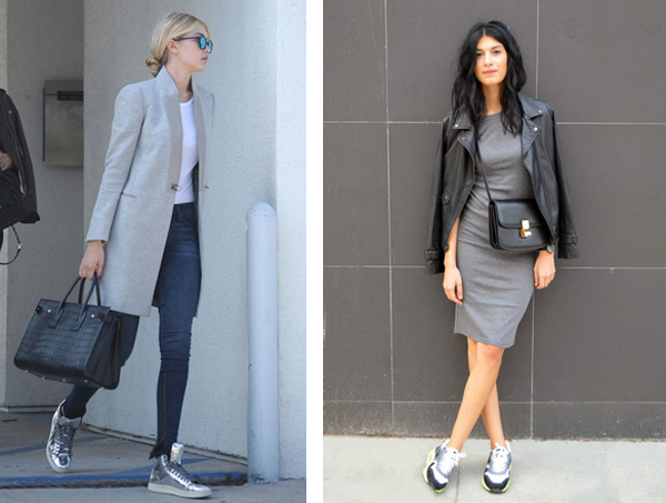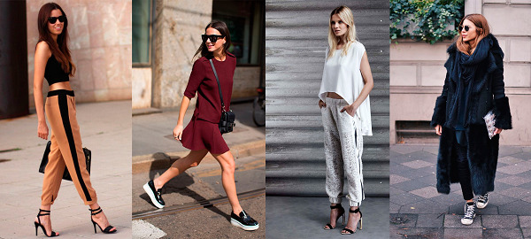 It is a very extraordinary combination of classic clothes with sporty wardrobe elements. The simplest and not so extravagant way to dress in this style is to add an accessory to the category of sport in a classic bow. So you can wear sneakers with a straight sheath dress, and you can add sneakers to your trouser suit. It is more difficult to fit a classic element into a sports bow, but a T-shirt dress harmonizes well with ballet shoes.