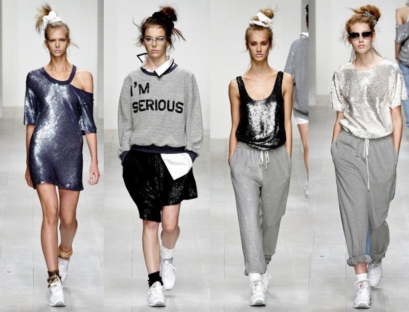 Acceptable when creating a street image is the choice of metallic fabrics, the presence of rhinestones and sequins. Shoes with heels for sport chic is quite acceptable. Often girls go in a simpler way, choosing a plush or velvet free-cut suit to create a sporty image with glamorous elements. A selection of the right and appropriate accessories will create a beautiful evening look in the style of sport-chic.