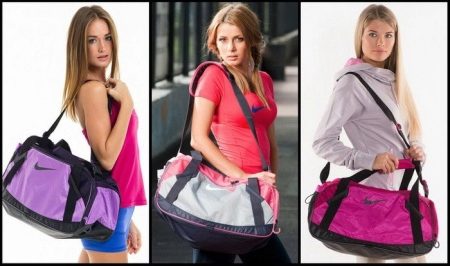 Bags and backpacks are an integral part of any female image, including sports bows. When choosing this accessory, one should choose not from classic leather models, but pay attention to modern artificial materials. Many manufacturers of sporting goods present in their collections roomy and comfortable models, which are made of dust- and water-repellent fabrics.