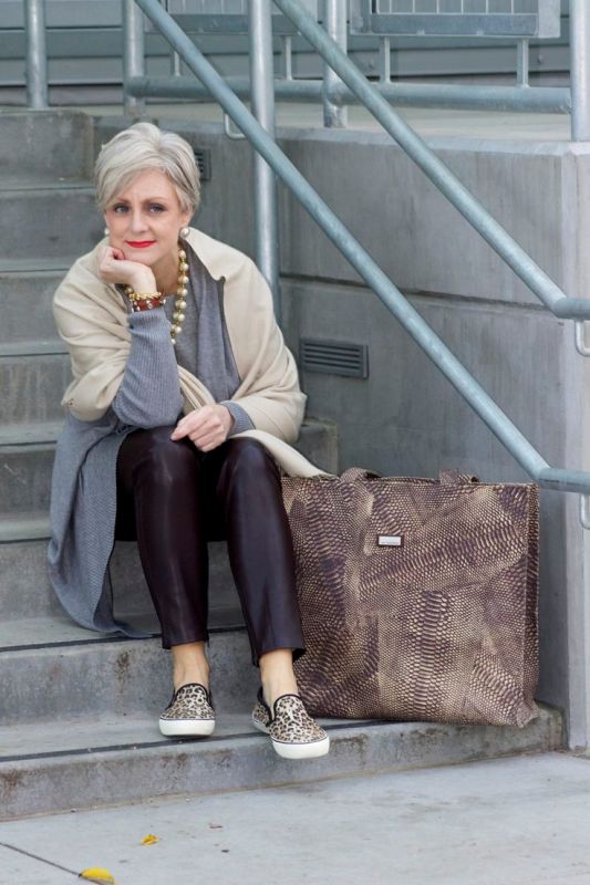 It is best to choose dark-colored clothing, and for mature persons the quality of the wardrobe should be at the height and correspond to the social status. Particularly bold and shocking women can make a bright bow in the style of sport chic, however, the line between good taste and inappropriate age category clothing is very thin.