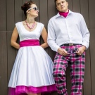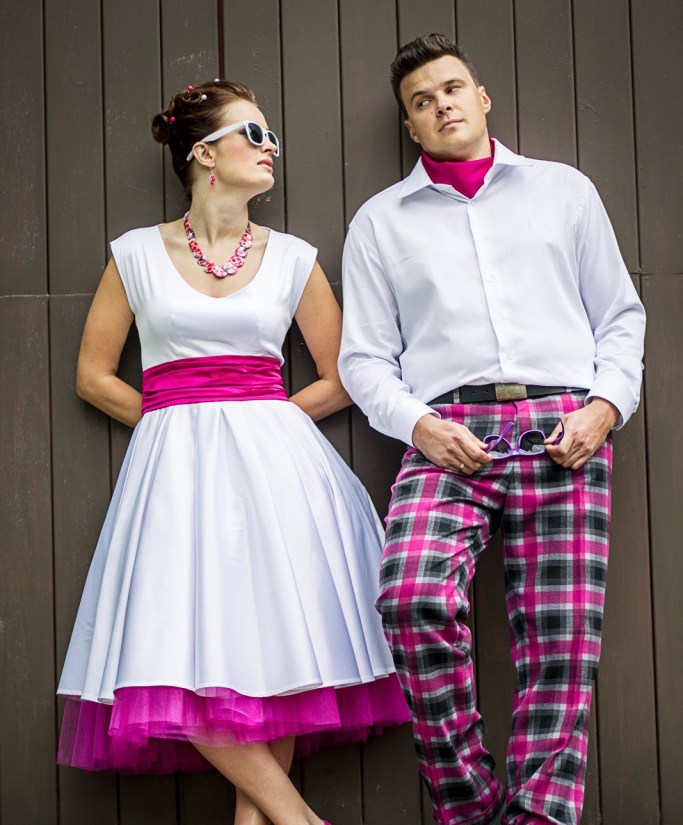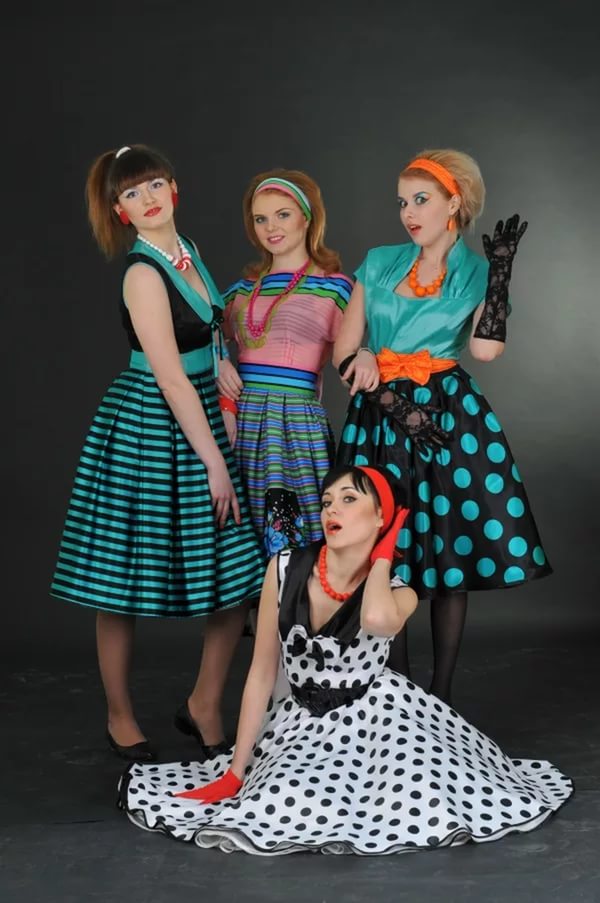 The most common were and remain prints in the form of large peas, horizontal and vertical stripes, patterns of flowers and ornaments of geometric shapes. A peculiar highlight of the dress of the first followers of the new subculture was that their pet-skirts were not white, but colored.