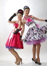 Today, you can dress up in style of style not only at a themed evening, but also, for example, at a graduation school ball. Sleeveless dresses with a full skirt, girded with a large wide bow are perfect for this purpose. You can use the dress on the straps. Especially beautiful looks outfit with a loop-strap. The latter option is perfect for girls with beautiful breast shape.