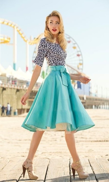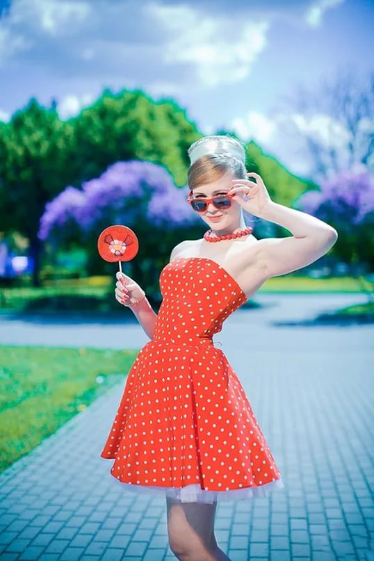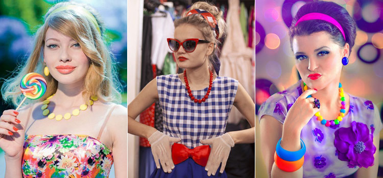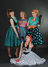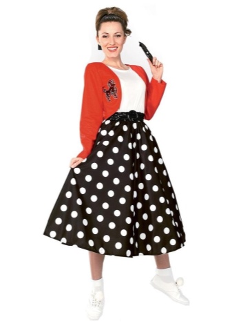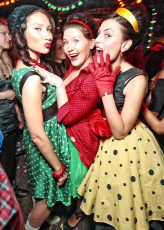 Relevant short-fitting models of bright colors, complete with large accessories. Wearing a similar outfit for your birthday can make this holiday truly unforgettable. And if you invite guests to support the idea and dress everyone up in stylish dresses a la the 50s, bright emotions and impressions will be provided for a long time.