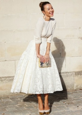 The classic option was a midi skirt. In some cases, for example, for cocktail parties, length reduction to mini was allowed. Initially, they were as lush as the dresses, but over time they “transformed”, became shorter and narrower.