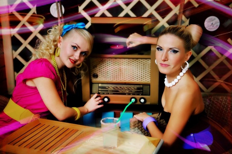 If a party is scheduled and how to dress in retro style of style - the first question, you need to remember that all the images should be bright and diverse. Usually the outfit of this direction is formed from the things of 2-3 dominant shades, combining honey with them. At the same time, white and black colors are much more common than others, and pastel and faded colors are banned altogether. Neon colors are very popular, helping to create a real holiday, raising your spirits and making you forget even frost and slush in the gray autumn-winter weekdays.