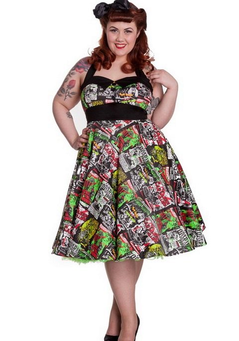 As for color preferences, women with overweight will wear dresses with a floral print (in a small pattern) or in a vertical strip with a length just below the knees. This option will allow you to hide the fullness and visually stretch the shape.
