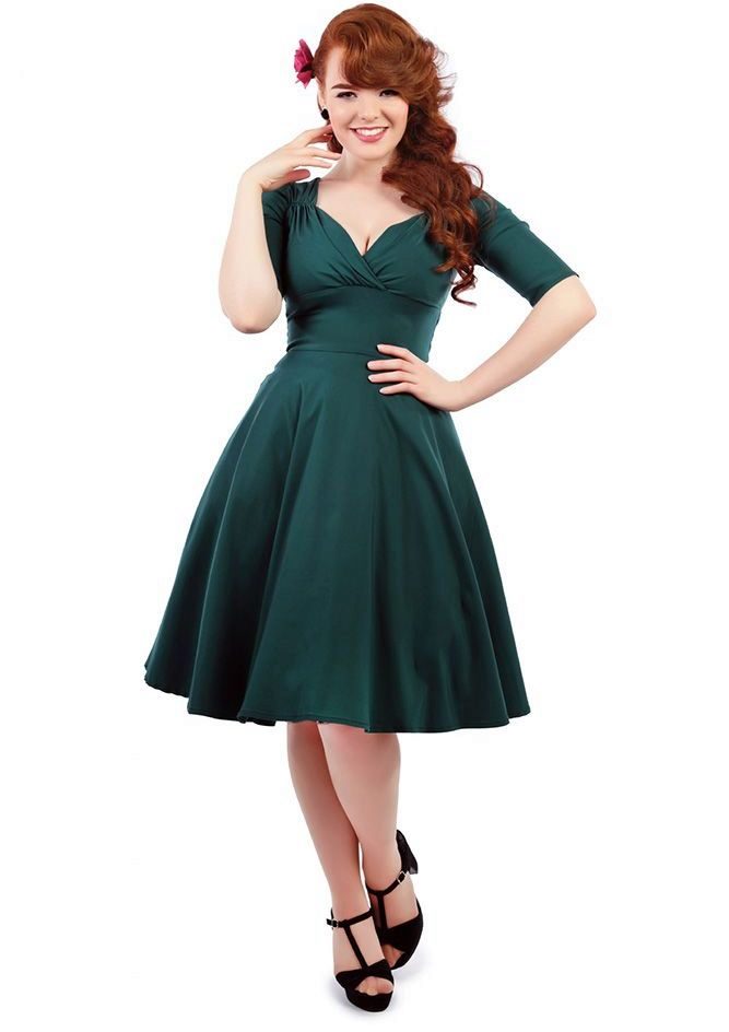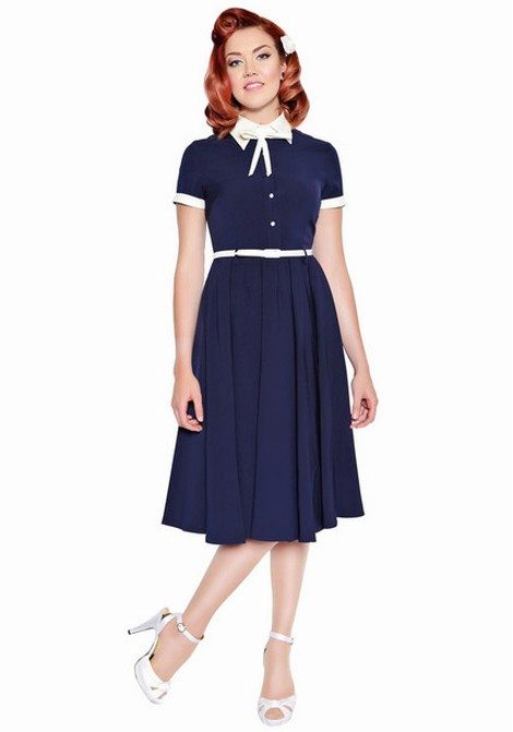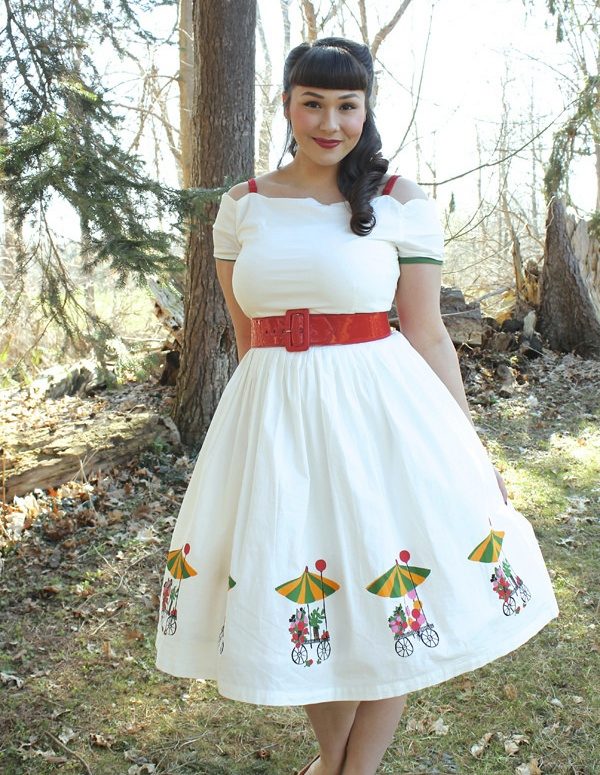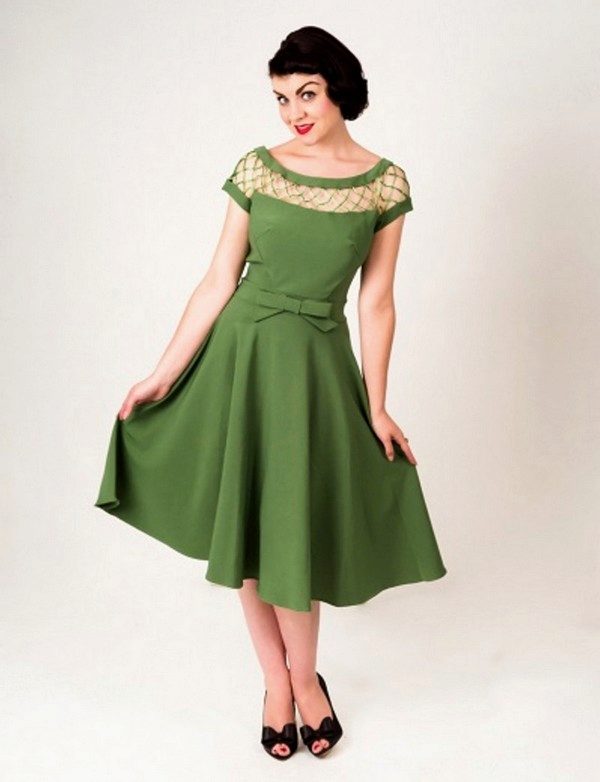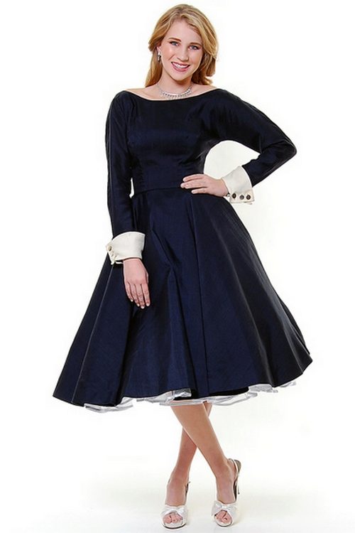 Dresses, popular in the 50s, look very feminine and affect the silhouette of any girl, adding to her attractive figure. Such a dress looks especially good on a girl with a large breast size.