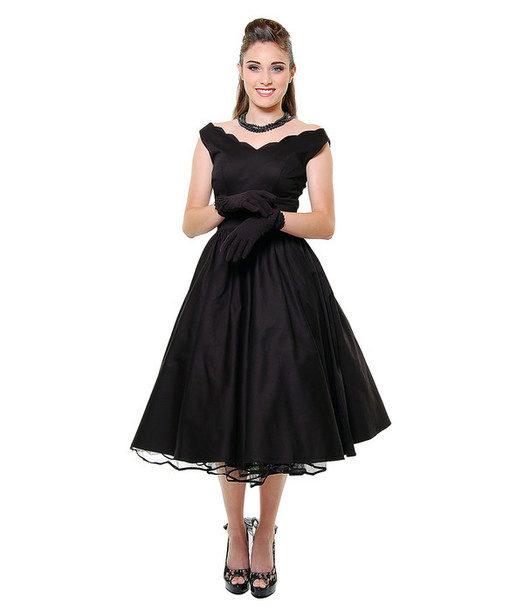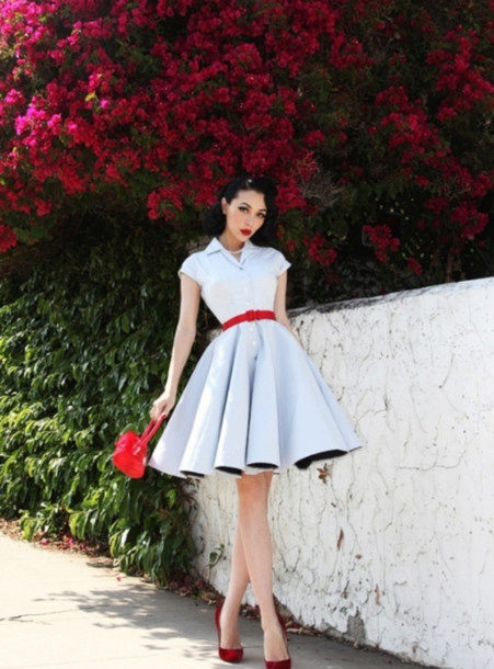 In most outfits of the era of the fifties, the skirt is luxuriant and voluminous, which is achieved using fabrics that keep form, as well as multi-layered petticoats. That is why these dresses are very like girls with the figure "pear".