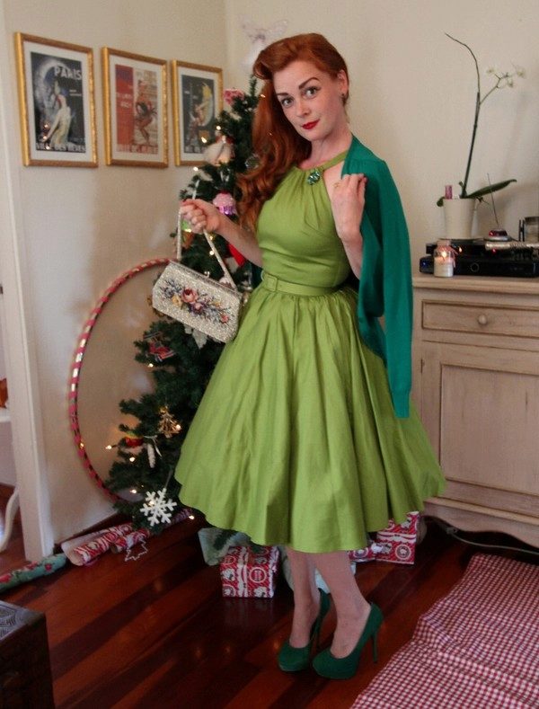 The best shoes to the dress of the 50s can be called shoes with high heels. Wearing shoes with such an outfit on a low run, you will deprive the image of charm. Shoes at the same time it is necessary to select monophonic and without bright decor. And in cool weather, elegant ankle boots will be a good choice for such dresses.