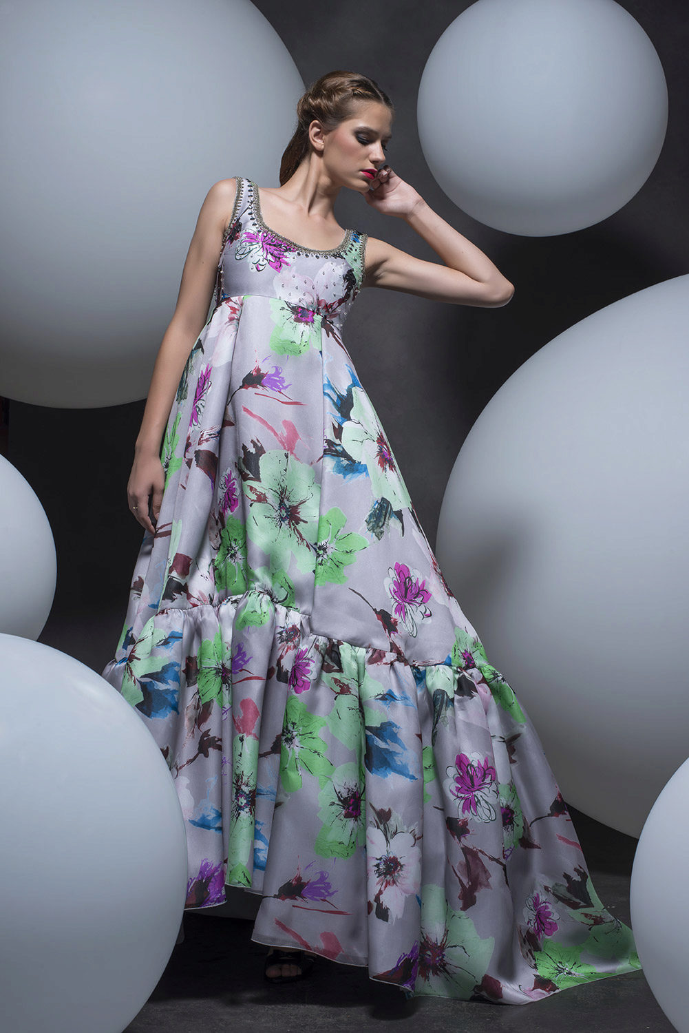 In the styles of evening fashion, Empire, perhaps, beats all records of popularity. There is a huge number of variations of modern empire evening fashion with a traditional sleeve-flashlight, with thin straps or without them.