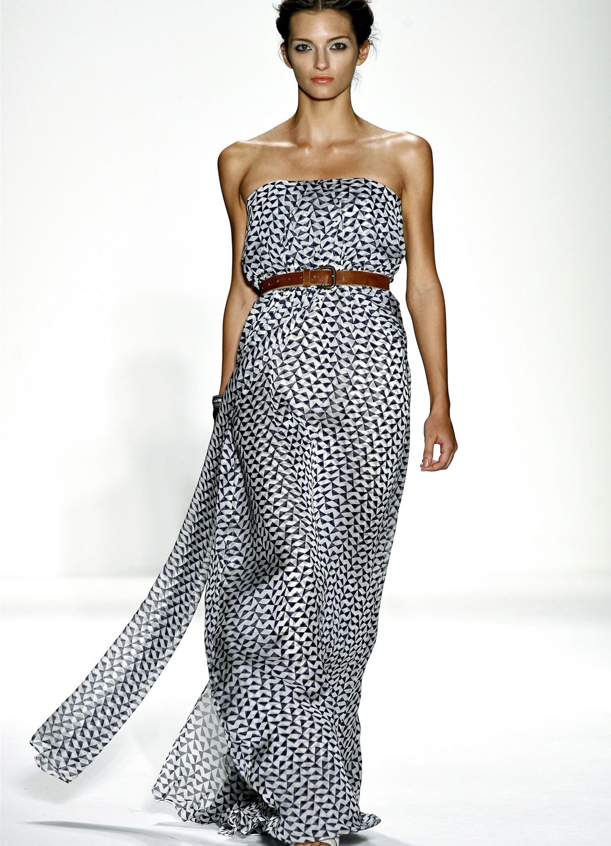 The wide popularity of the dress gained precisely because of the high waistline, which allows to correct the figure flaws and emphasize the beauty of the arms and neck.