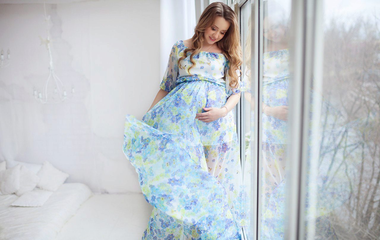 In such dresses, pregnant women look extraordinarily natural and feminine.