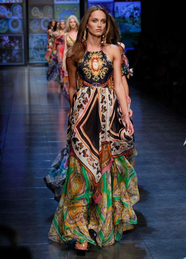 Here, of course, ethnic motifs should prevail. The belonging of dresses to this direction is recognized by the appropriate patterns and ornaments.