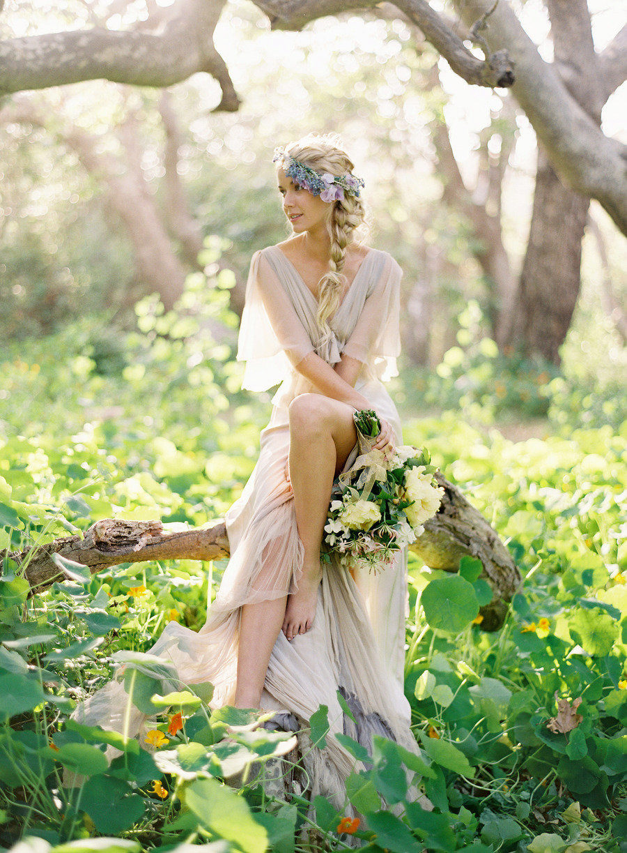 Veil to such dresses does not fit. But the lace caps, strands of pearls and beads, woven into the hair, and fresh flowers can adequately replace the classic wedding element.