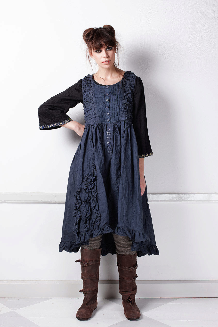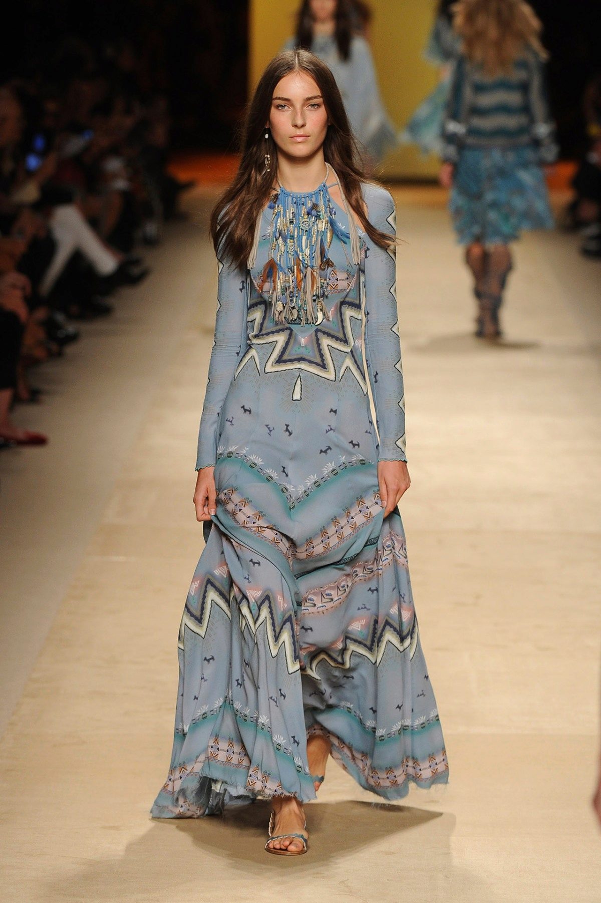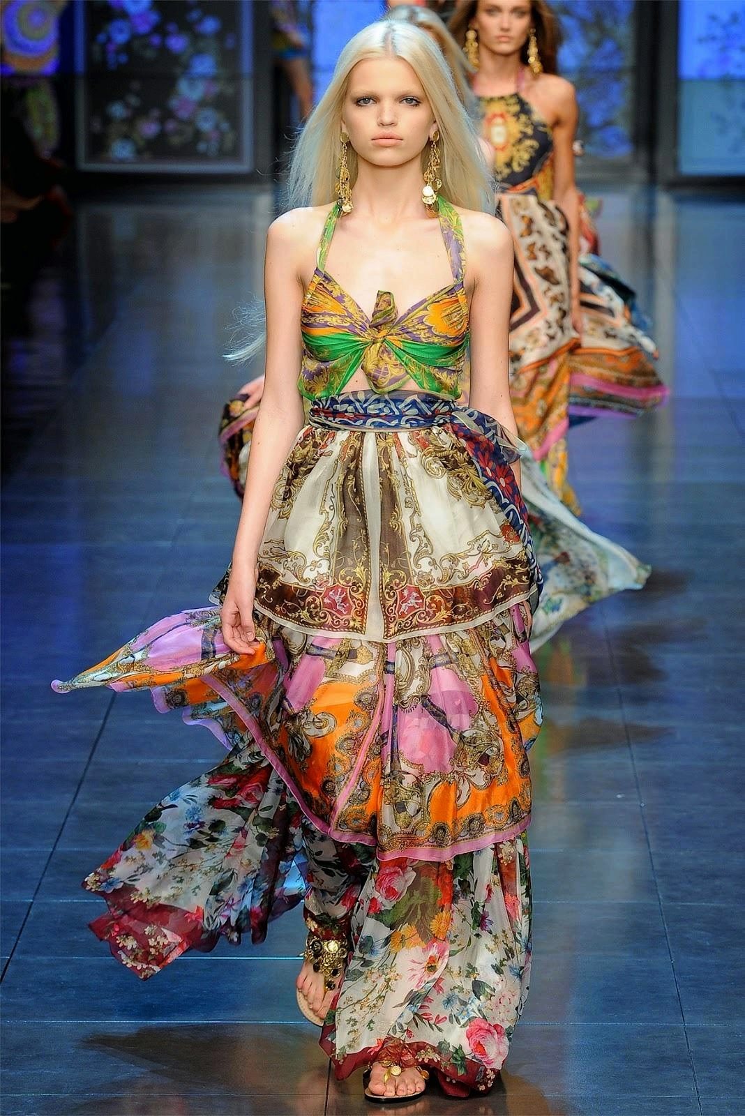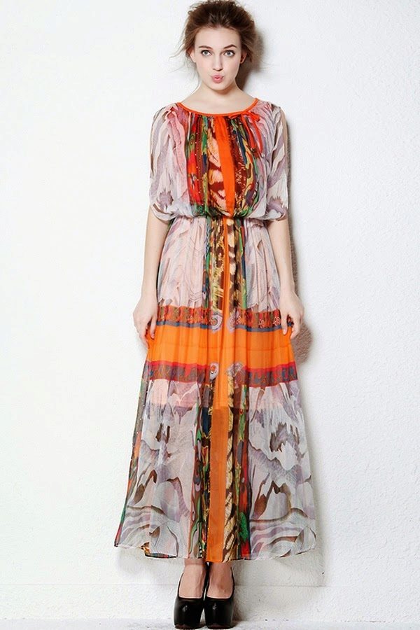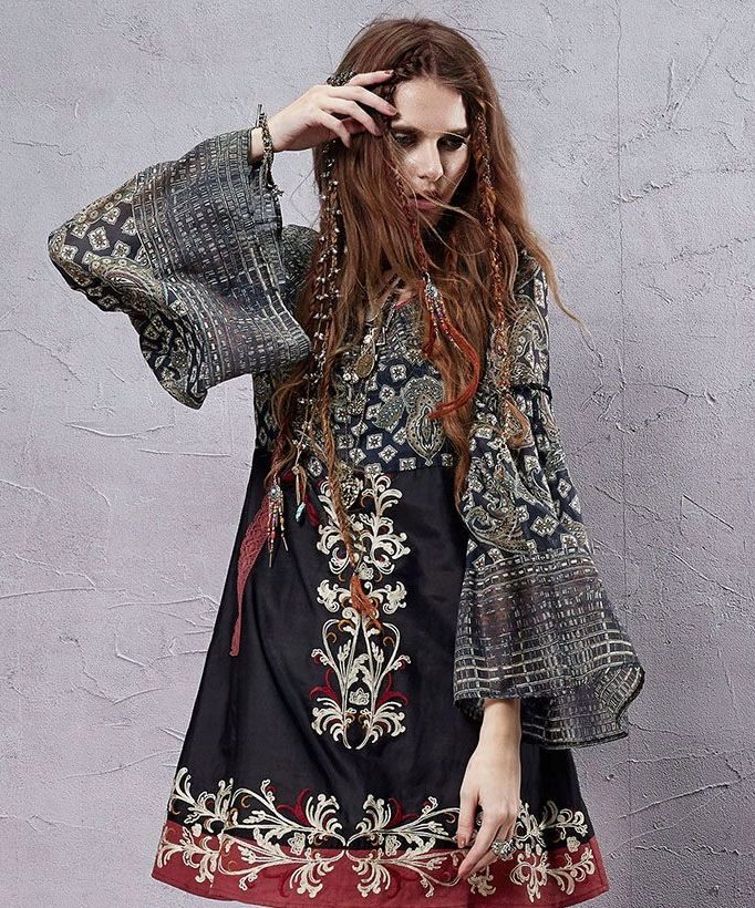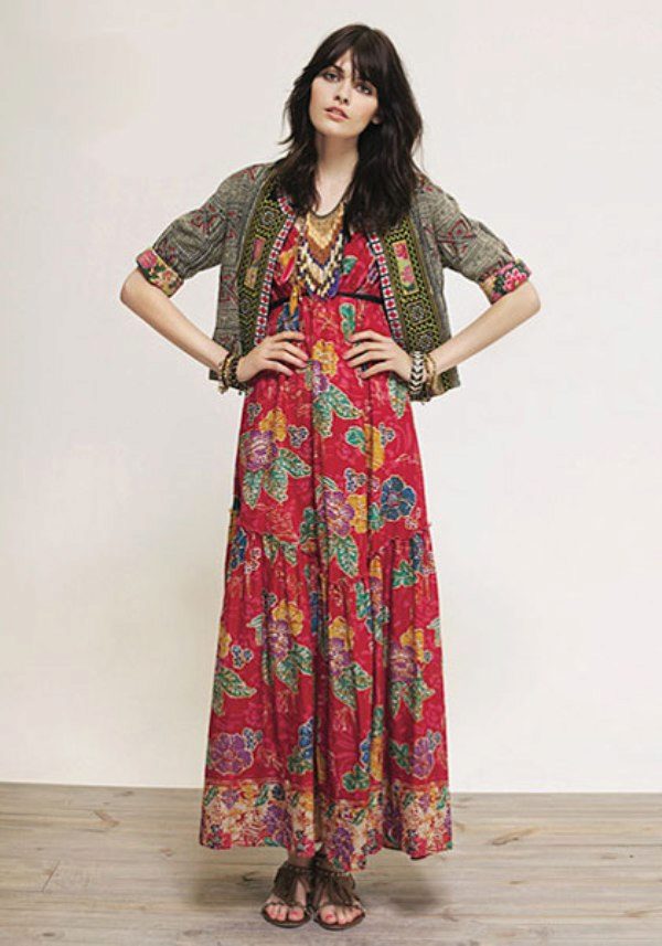 A long loose dress is the most characteristic element of boho style clothing. Most often it is multicolored and a bit like those that gypsy women wear.