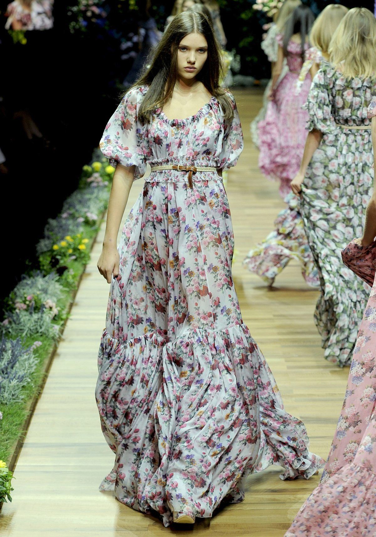 Several tiers in skirts are a popular element among designers that helps create a moving and airy dress. The upper part of the dress may have small sleeves or straps.