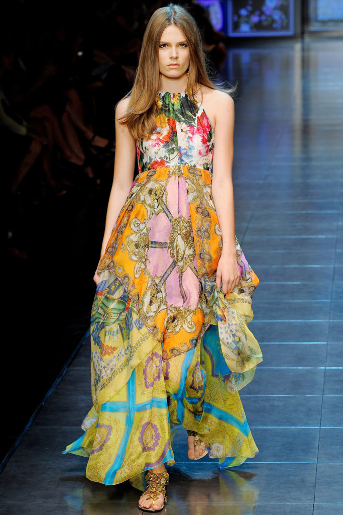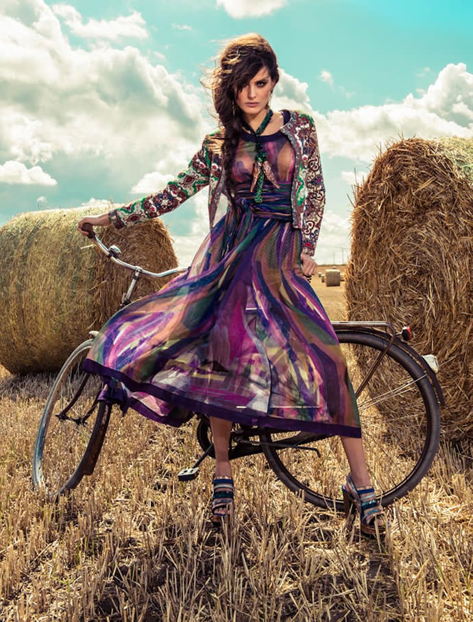 This direction allows you to combine a fitted top with a multi-layered chiffon skirt and light lace. Characterized by a bright print.