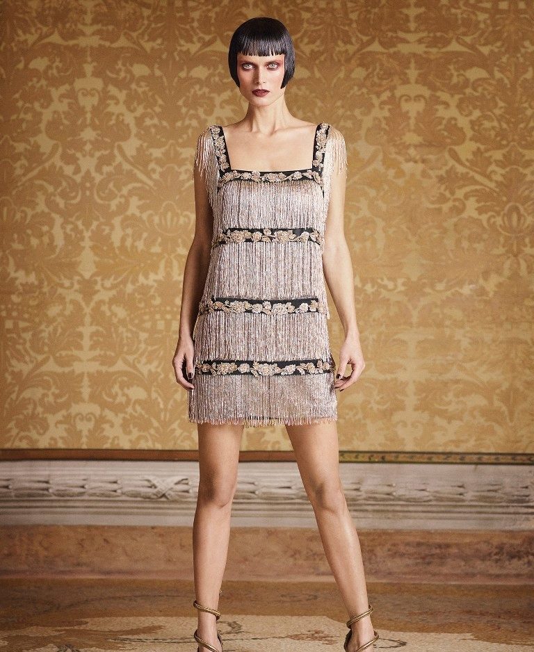 Fringe, which is located in several tiers, is often present in Chicago-style dresses. Such a decorative element when moving looks seductive and magical.