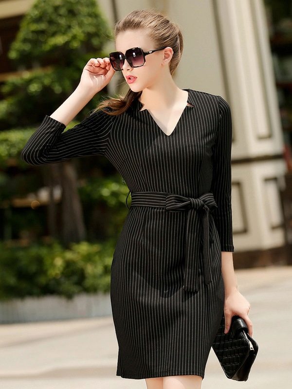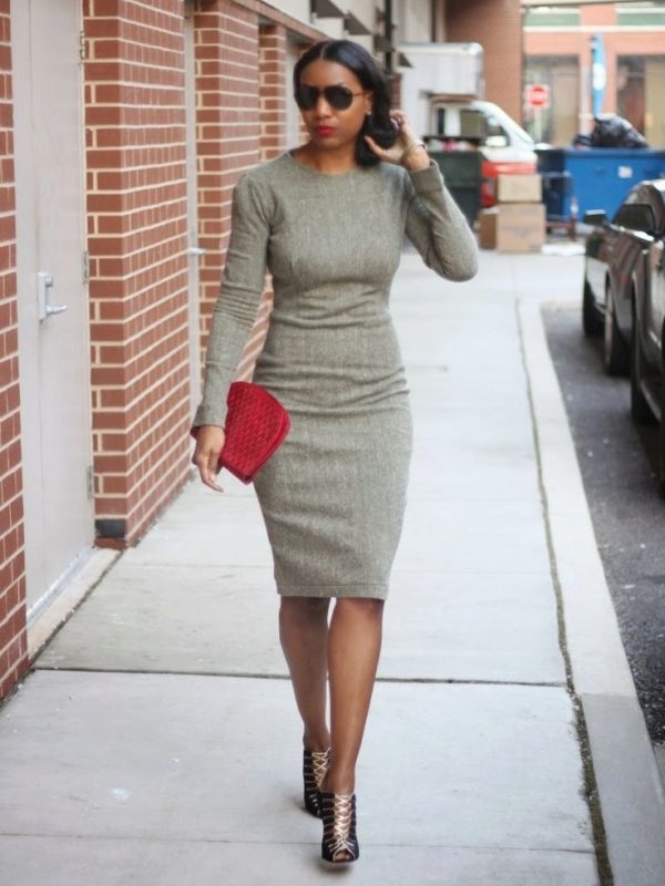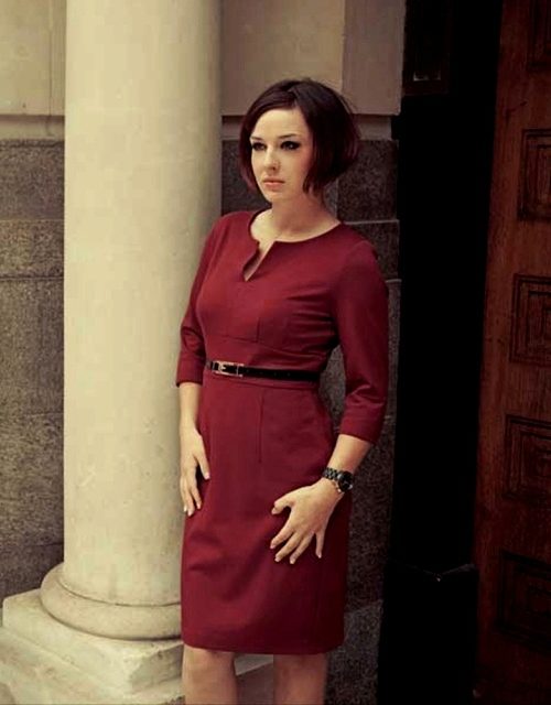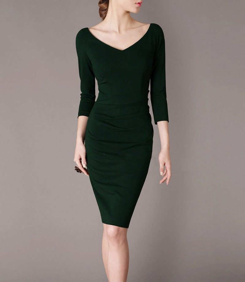 Sheath dress fits perfectly on the figure and does not hang down. To hide some problem areas, you can wear corrective underwear. The presence of sleeves will help to hide the thickness of the arm, make it slimmer. You can stop the choice on the sleeve ¾, which is often used in this model. The presence of the sleeve will help straighten the shoulder girdle and create overall balance in the image.