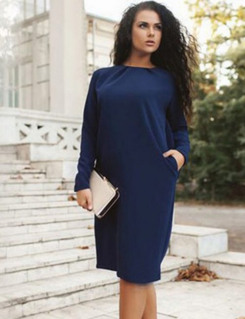 Sheath dress is already a classic, it is often chosen by women with magnificent forms, because this style is considered universal. Owners of the “hourglass” figure can easily get knitwear dresses, this material is very beautiful to lie on the figure. The average length of a dress that reaches the knee is usually used. Most models have a sleeve ¾ or long to hide the fullness of the arms.