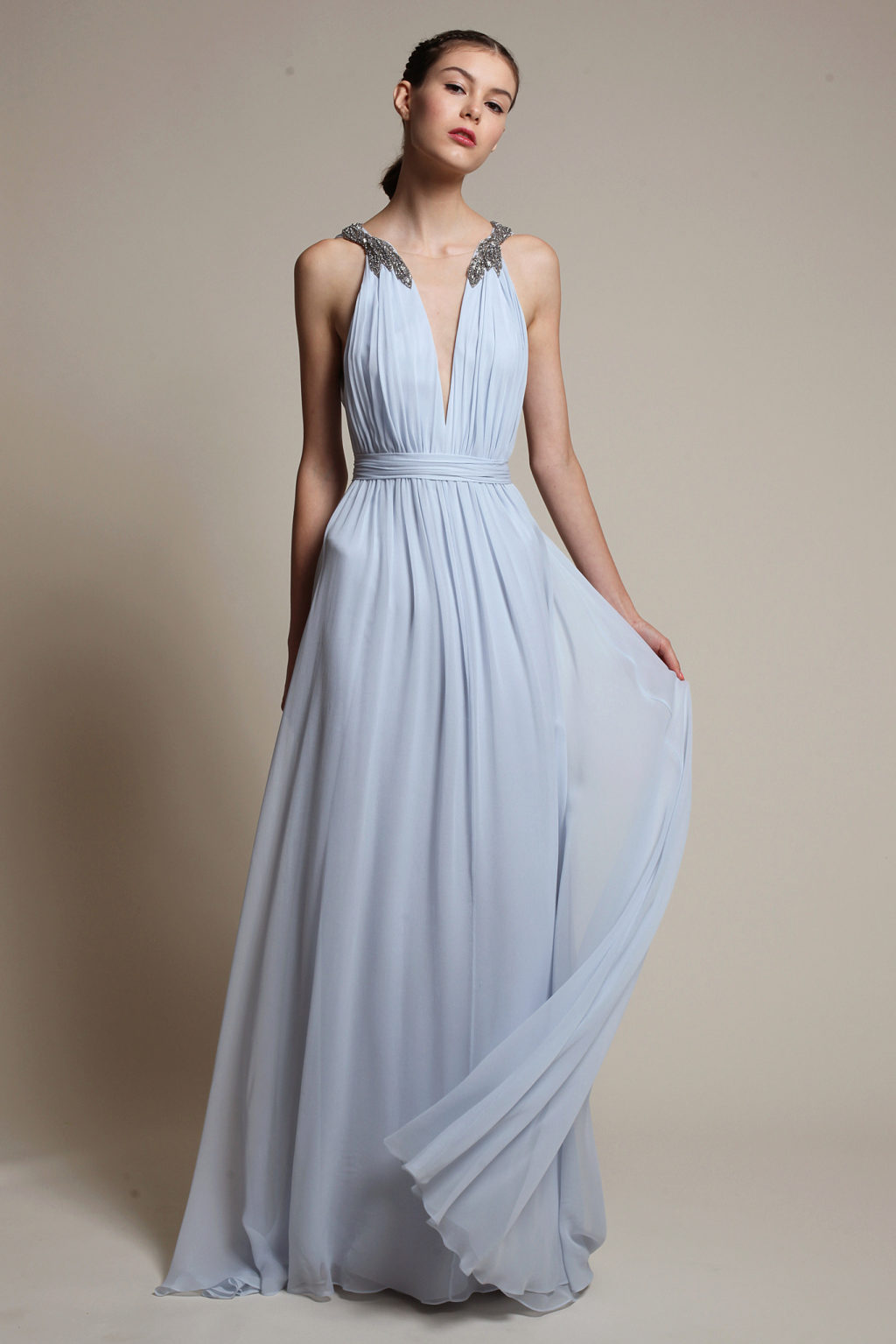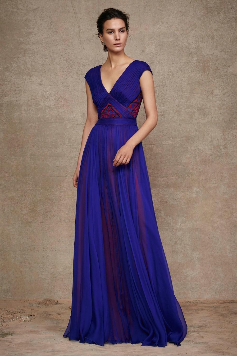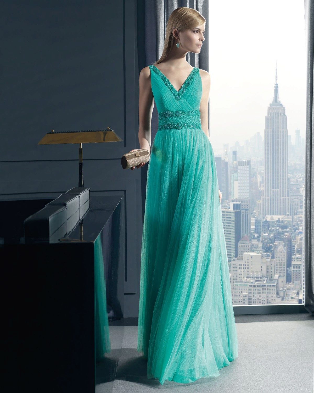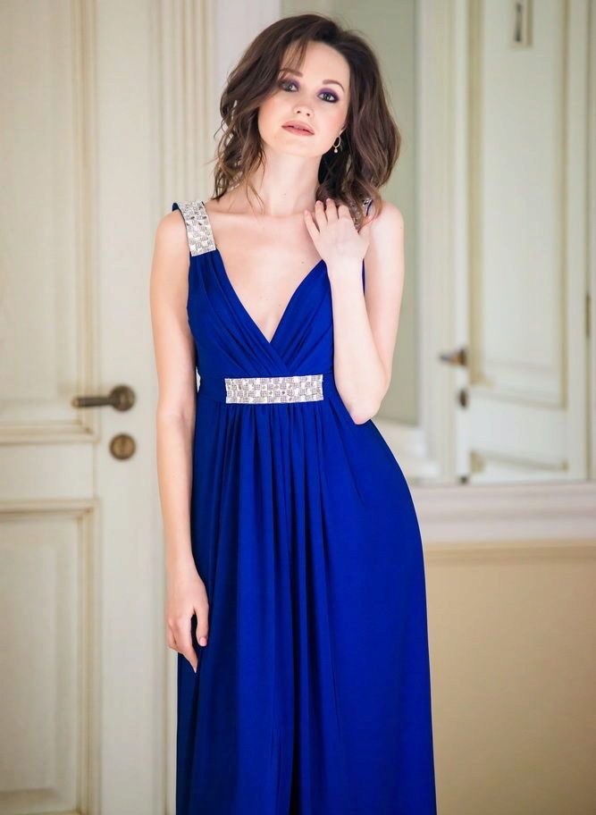 Monochrome models of saturated colors can be a good option for an evening look. More muted versions of blue in a dress of Greek style can participate in the formation of a daily image.