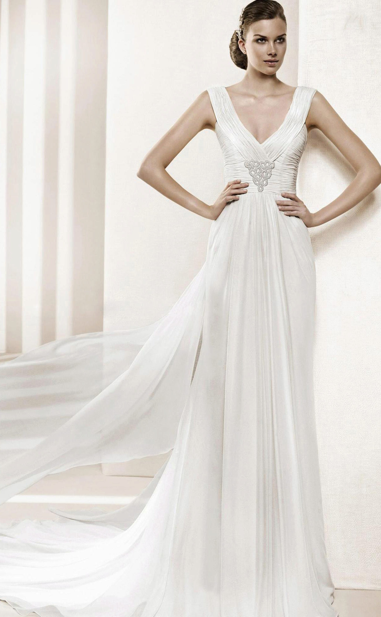 Harmoniously in such models look belts and a variety of accessories. Most often, the Greek wedding dress has a floor length.
