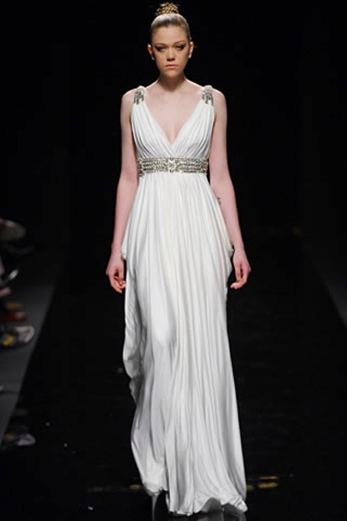 Greek style blends perfectly with classic elements. This circumstance designers have adopted, showing the world model with uncomplicated drapes and lace.