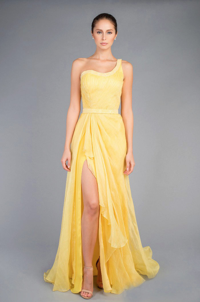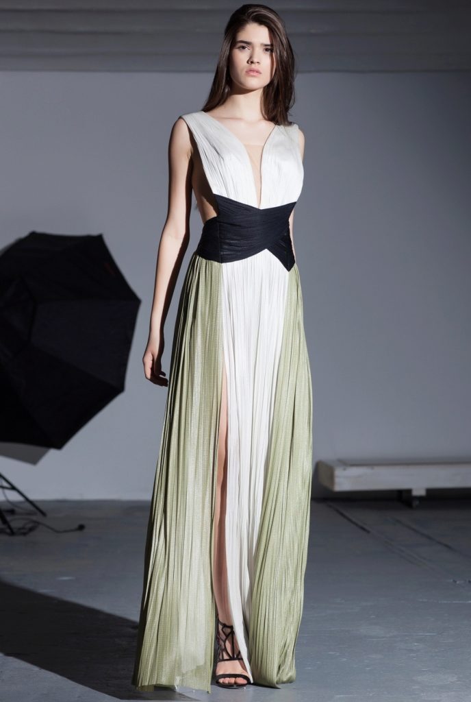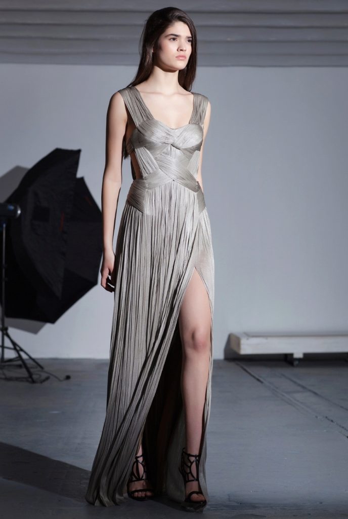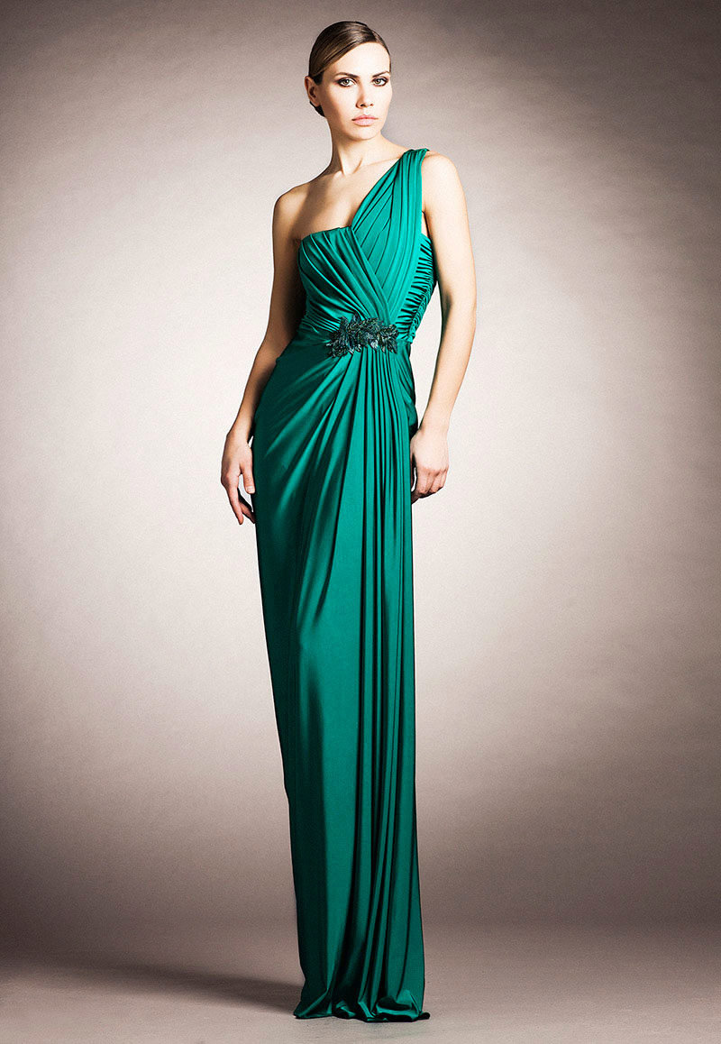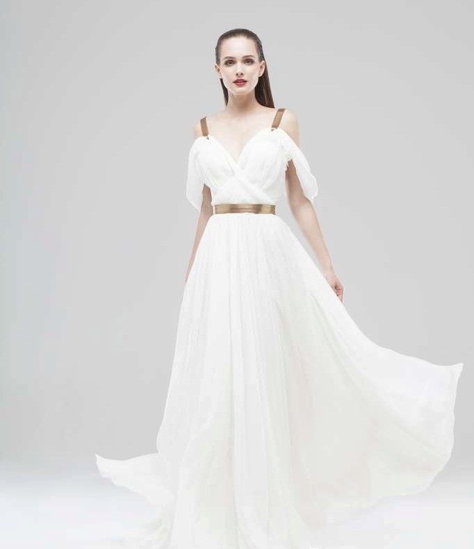 The first thing that catches your eye when you look at a Greek dress is an emphasized straight and long silhouette, high waist and bare shoulders (one or two).