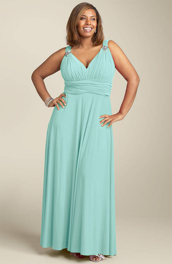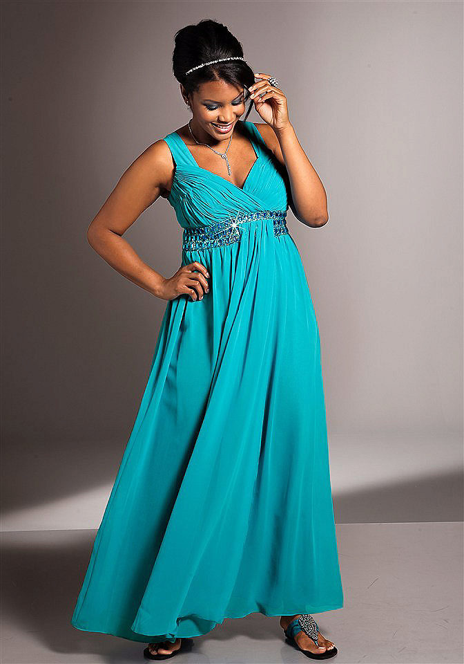 The evening version should emphasize the chest well, and on the skirt should have a free cut, which will allow to veil the excess volume. Long models will visually pull the figure, giving the female silhouette harmony.