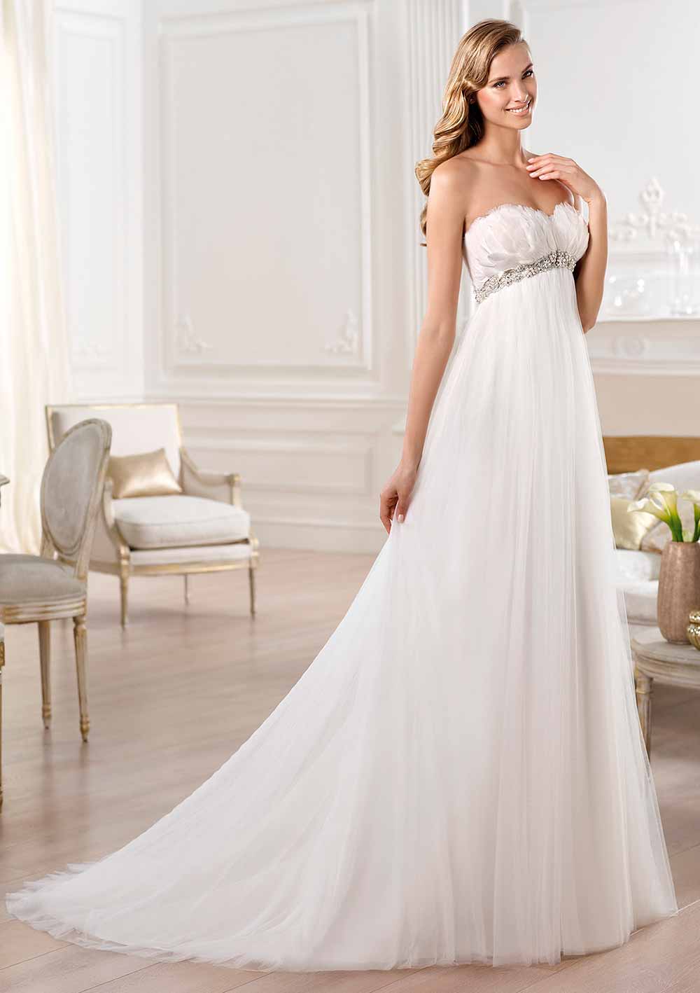 Brides in such dresses look innocent, beautiful and very feminine. In such an image asks for a tiara.