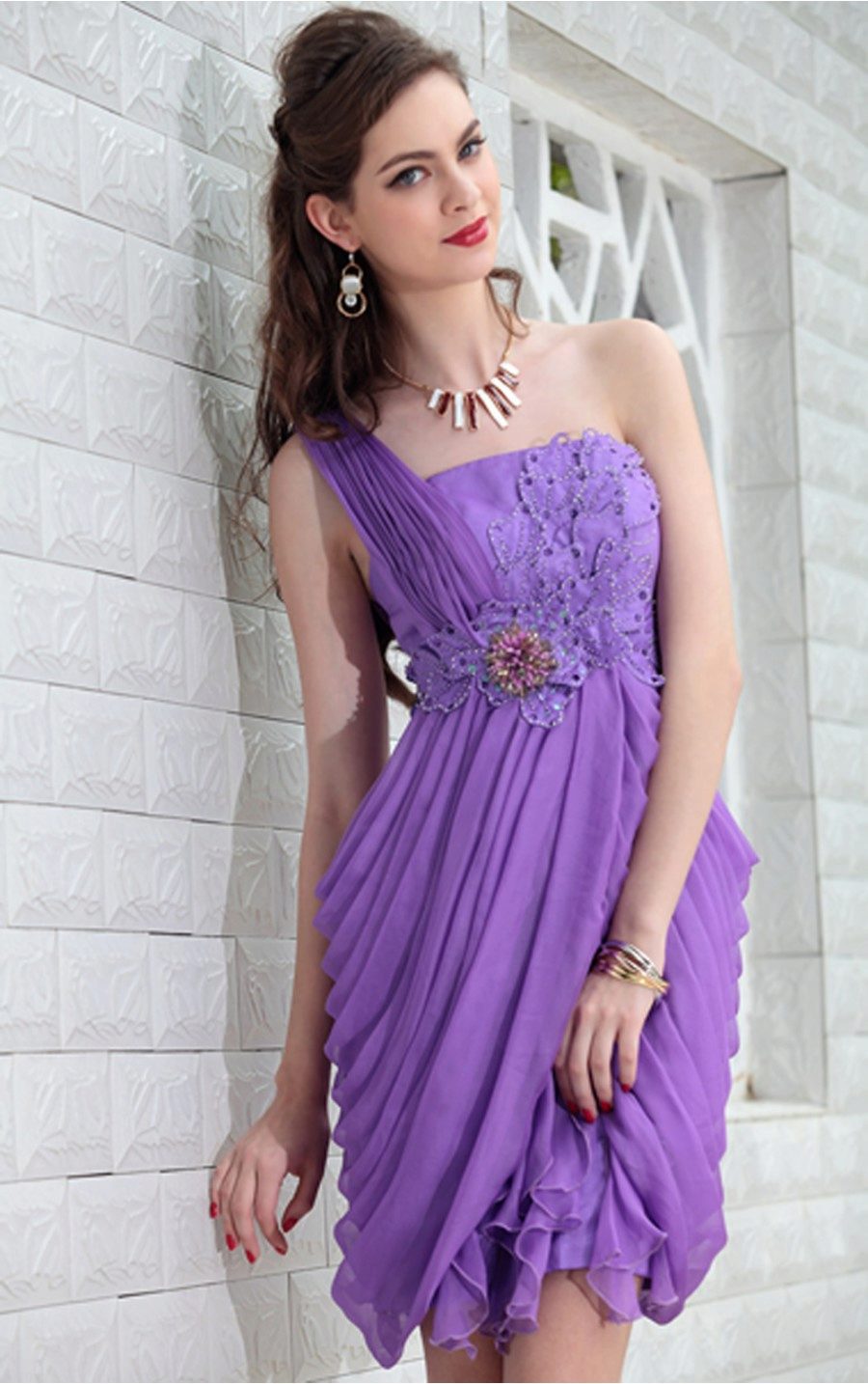 A good choice for a prom dress would be a Greek cocktail dress, in which the legs will look more slender. Asymmetric lines in the hem or top area are perfectly combined with the Greek style.