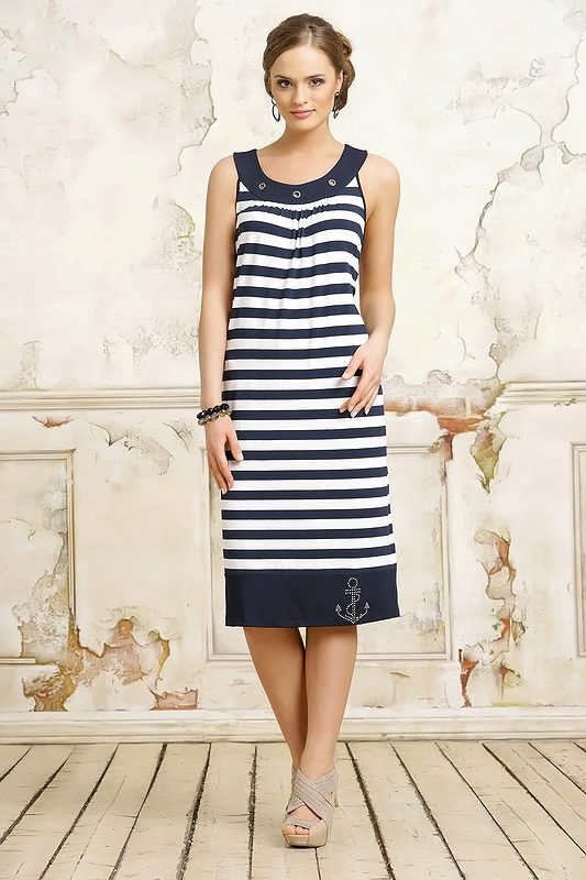 A short, slightly playful dress with striped colors - this is the ideal and most common representation of the marine style in women's clothing.