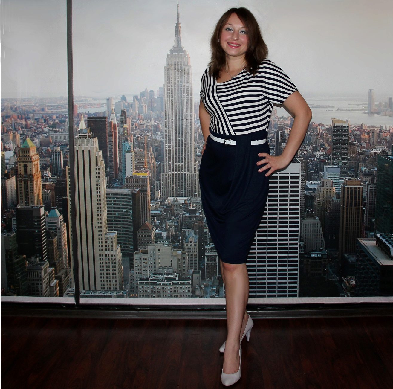 - The “square” figure with the help of a marine dress needs to be visually divided. For this, it is permissible to choose models with an oblique pattern and combined dresses.