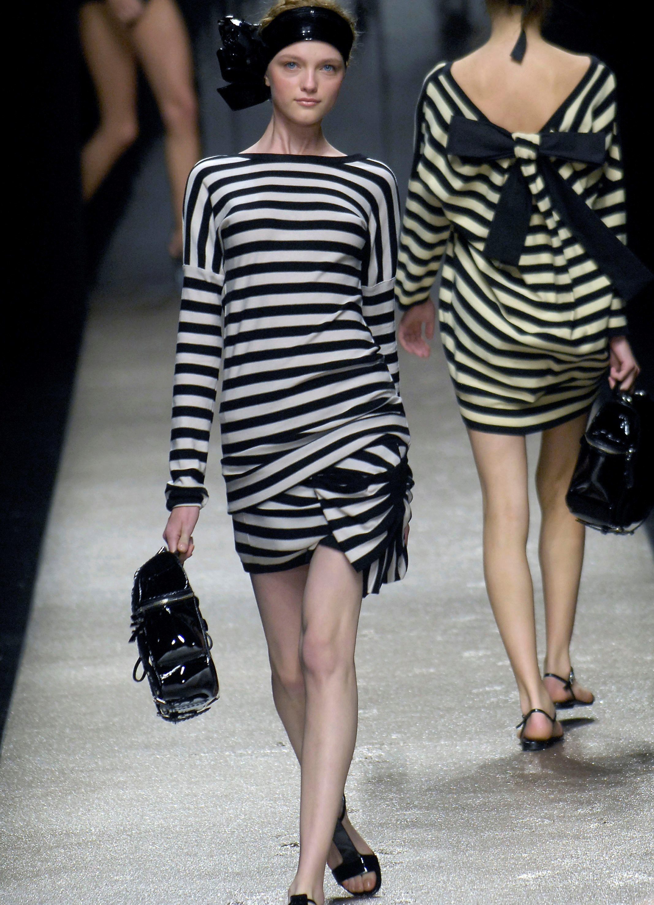 Retro style, which is expressed in lush short dresses, has found its display in a nautical style.