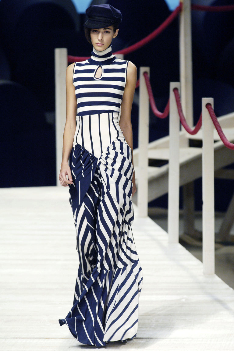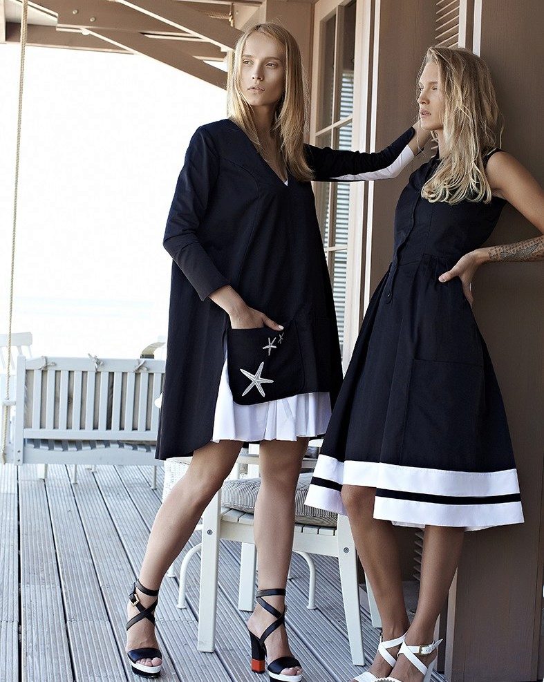 The nautical style is originally embodied in evening dresses. It looks good in any style, and classic colors can be very useful.