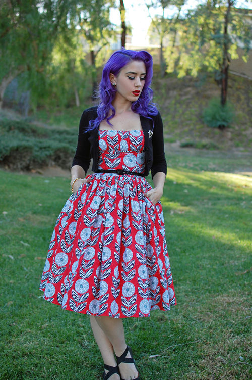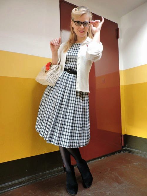Dress in the style of the 50s can be blended with a bolero and tops, light-knit cardigans and fitted jackets. Such sets are considered classic and repeat the traditions of the time when the famous style was born.
