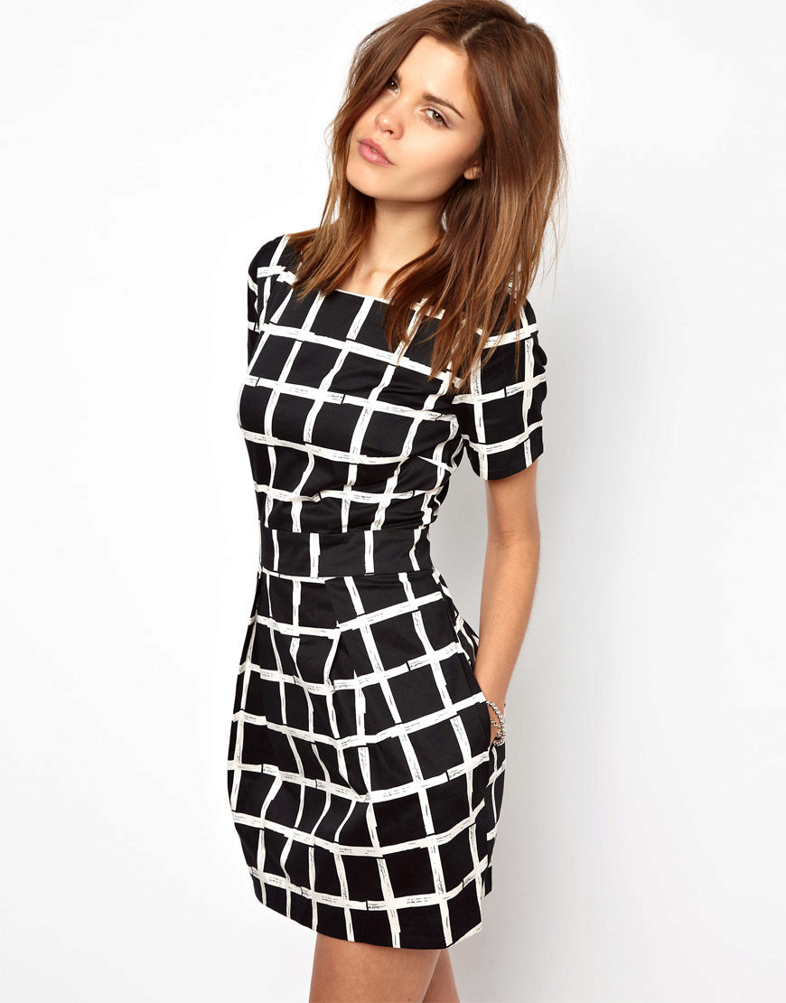Today, geometric shapes are very popular. They fit perfectly in a strict office style and make each model of the dress original and unique. The presence of the pattern should be compensated when choosing a discreet color scheme. For example, on a black background, you can draw a geometric pattern with another dim color.