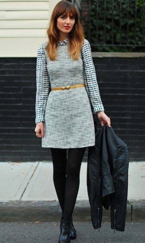 The classic version of office clothes is a black dress, under which you can wear black or flesh-colored tights. But remember that the color of the shoes also plays a role in choosing the color of the tights, because it is necessary to create harmony.The perfect solution would be to use shoes and tights of the same color.