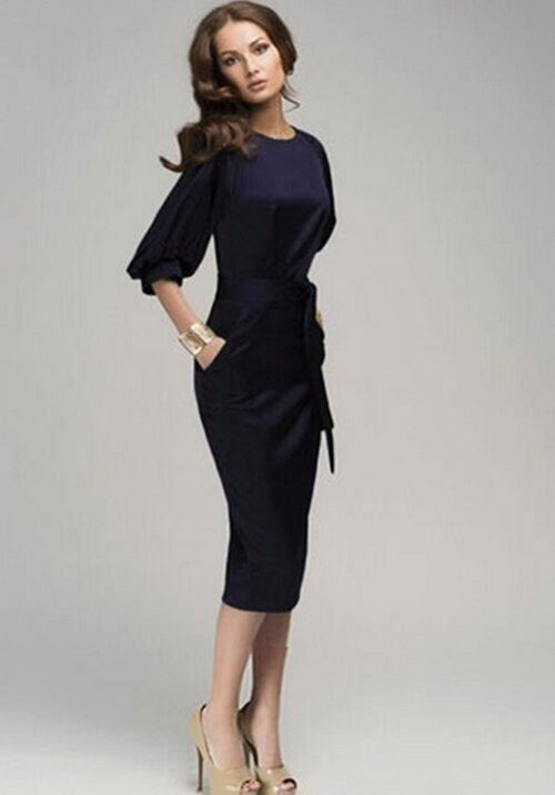 Office dresses can be made of various fabrics, of course, natural materials are a better choice than synthetic ones. Transparent or “simple” materials cannot be used for business style, as they do not fit into the overall concept of a business image.