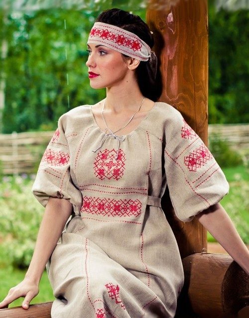 - Making clothes from natural fabrics. Cotton and linen are the most relevant for Russian style dresses. A fabric in which there is a small amount of synthetic fibers is also permissible in order to facilitate the care of the product.