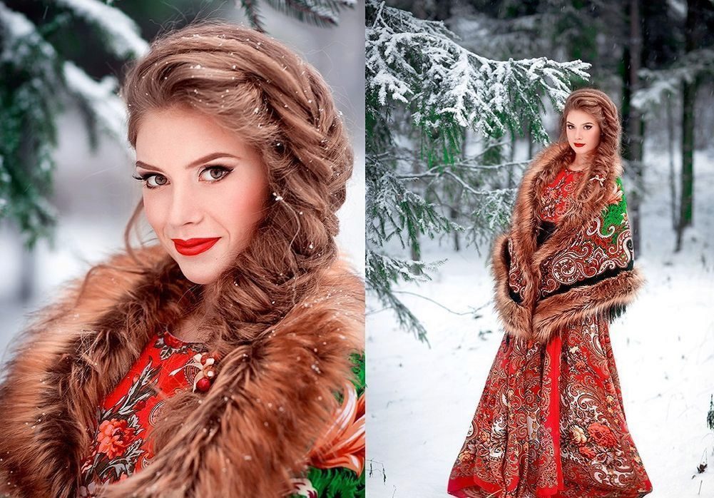 His main goal in creating an image in the Russian style is to emphasize the natural beauty of a woman. Cheeks should be slightly rosy, lips - red, eyelashes - long and black, eyebrows - well-groomed and thick.
