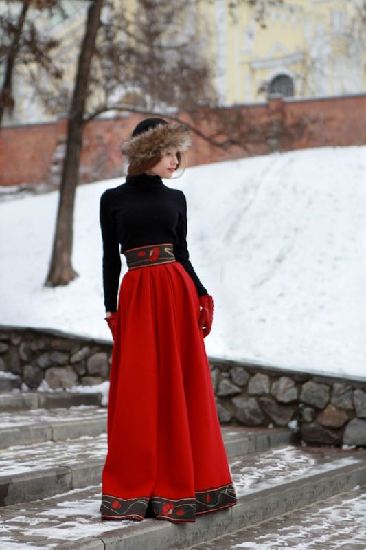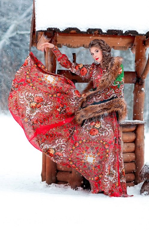 - In a cool season with a Russian dress, you can wear a clutch or a fur coat.