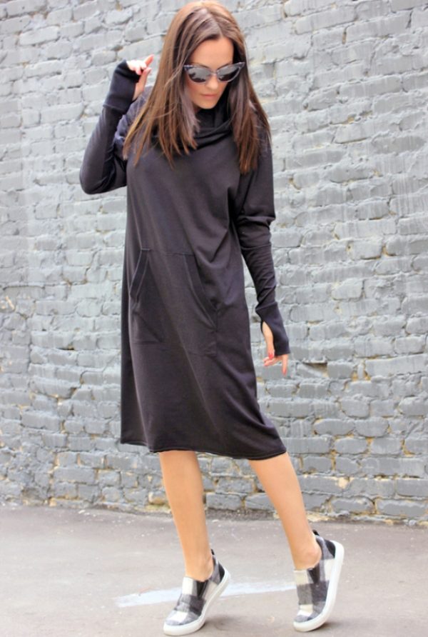 Such outfits are popular even among Hollywood stars. Take Kylie Minogue, for example, who considers sports dresses with a hood stylish, comfortable, loose. The hood does not only play an aesthetic role - it can save you from inadvertently rising wind or summer rain. Even for a cool autumn, sporty dresses are created, although knitted.