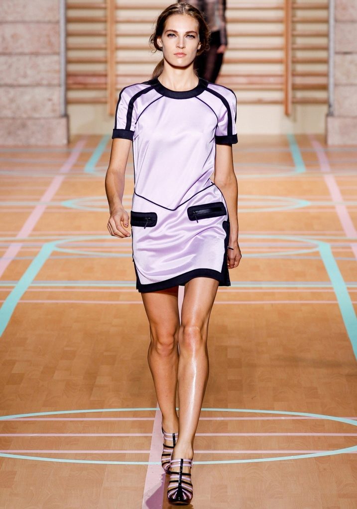 Simple cut and clear lines. These characteristics are also responsible for the comfort that should be experienced by the owner of a sports dress. A free cut must be combined with a light fit. Designers manage to give sportswear notes of sexuality, seductiveness and brightness. These qualities are hidden behind the skillful selection of colors, concise fittings, unique finish. On sporty dresses, there can be patch pockets, various folds, decorative elements, slots and other trifles.