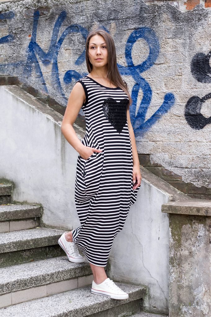 The marine style does not go out of fashion, which looks good in sports dresses, sundresses. This outfit is definitely worth taking with you to the seaside vacation.