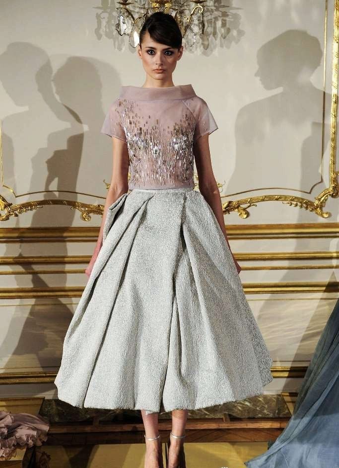 Shifting forward a decade and we face a summer dress with a short length and an A-silhouette.Then began to appear skirts, pleated in summer versions of dresses, loose sleeves and collars with sharp edges.