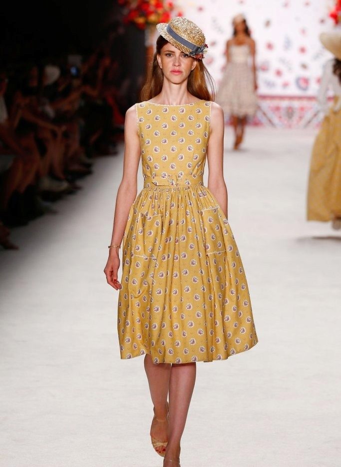 If you meet an airy dress with small polka dots, a well-defined, narrow waist, then there is probably a summer version of a vintage-style attire.