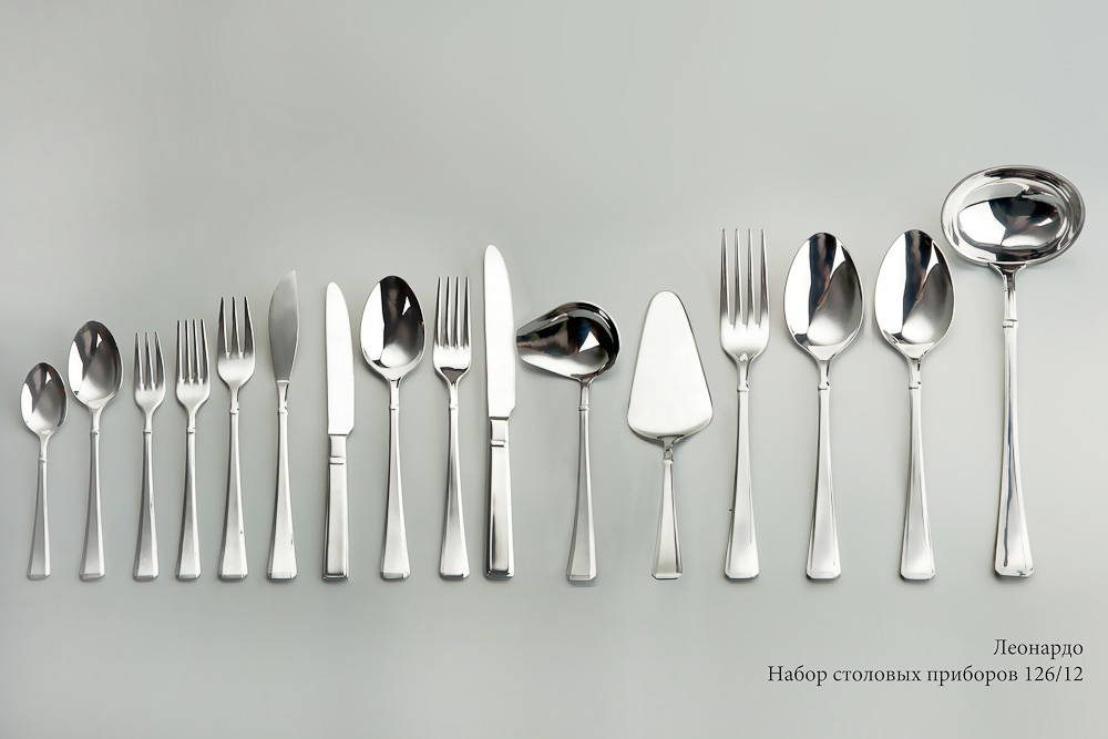 One of the most popular kits is Palladium, it belongs to premium products. The set includes 126 items for 12 people. The set is decorated in the style of classics and is often chosen for use in expensive restaurants. Products made from stainless steel with a thickness of 3 mm.